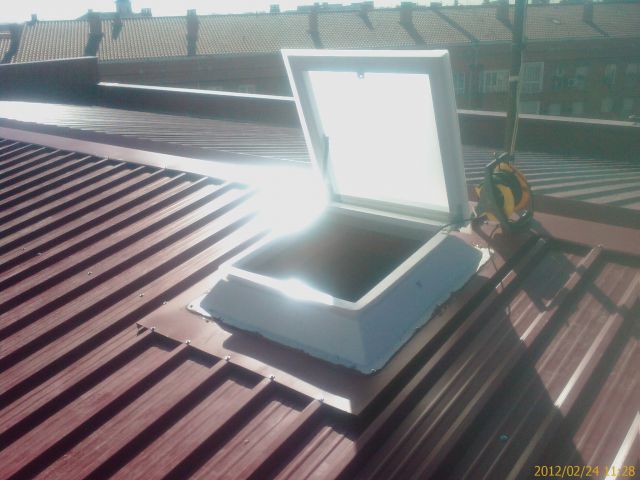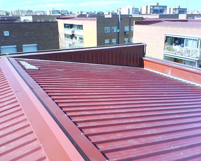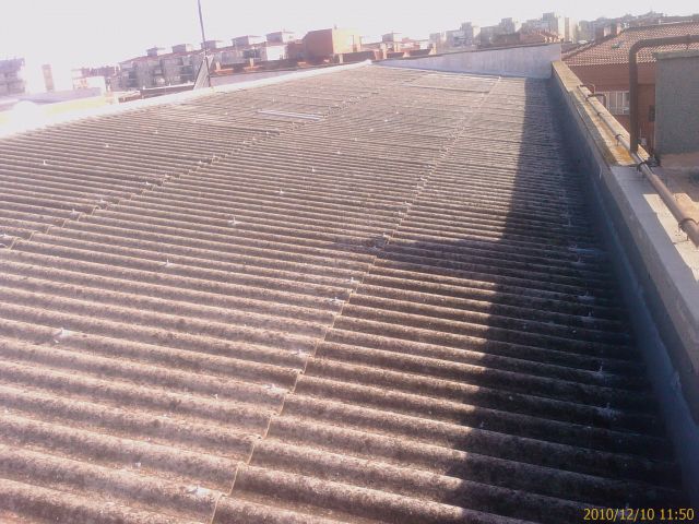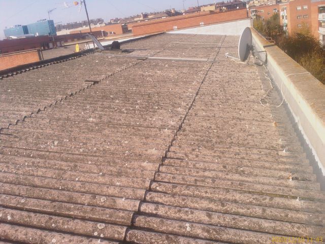Colocación de omegas sobre la cubierta existente. Suministro y colocación de nuevos canalones de chapa. Extendido de manta intermedia de I.B.R como aislamiento. Colocación de cubierta sándwich prelacada sobre uralita, in situ aprovechando la cubierta de uralita existente formada por chapa trapezoidal prelacada de 0.6mm. de espesor. Los paramentos verticales y los remates también irán acabados en chapa prelacada.