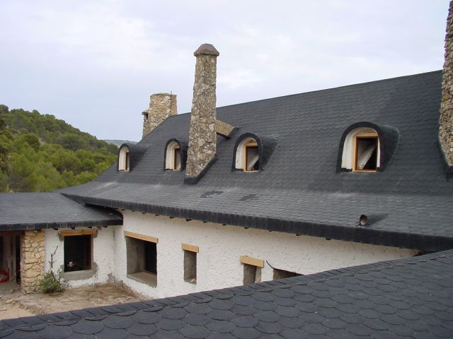 Suministro y colocación de placa asfáltica con armadura de fieltro de fibra de vidrio de 110 gr/m2, recubierta con mástico bituminoso de gran resistencia a la temperatura y protegida en su cara externa con gránulos minerales de pizarra y con acabado de arena fina como material antiadherente en su cara interna. Esta placa va fijada mediante clavos de acero al hormigón y soldadas las hojas entre sí.