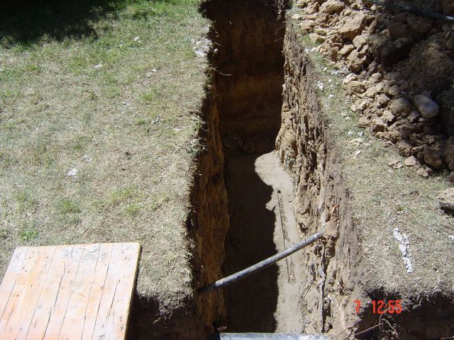 Retirada de tres filas de baldosas retirando escombros. Excavación de zanja en el perímetro indicado de un metro aproximadamente. Realización de una cama de mortero de cemento y arena de río en la base de la zanja.Impermeabilización de la cama y muro perimetral. Colocación de tubería de drenaje revestida con geotextil y rellena con grava filtrante. Relleno, extendido y compactado de tierras propias. Formación de una base de hormigón armado con mallazo sobre las tierras compactados para realizar una nueva canal de recogida de aguas y volver a subir un murete. Impermeabilización con dos telas de la zona hormigonada y suministro y colocación de plaquetas y rejilla.